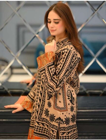 ব্লক-প্রিন্ট ডিজাইন — আরামদায়ক ও স্টাইলিশ ত্রি-পিস সেট
