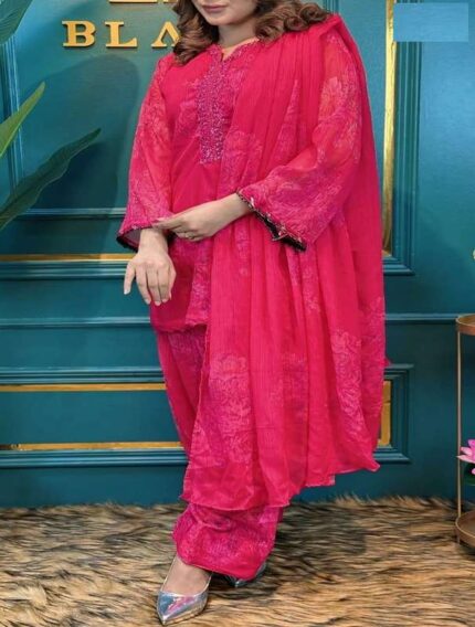 এই সেটে কামিজ ৪৬" লম্বা—হাতার কাপড় আলাদা রাখা হয়েছে যাতে আপনি ইচ্ছেমত সোমবার/লেস কাটা করতে পারেন। ওরনা ৫ হাত — সুন্দর পলিশ ও ড্রেপ দেয়। সালোয়ার ২.৫ গজ — ফ্লোইং ফিট নিশ্চিত করে।
