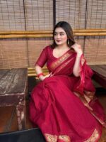 💃 গাঢ় মেরুন রঙের মনোমুগ্ধকর বেনারসি শাড়ি, রাজকীয় সৌন্দর্যের ছোঁয়া নিয়ে।